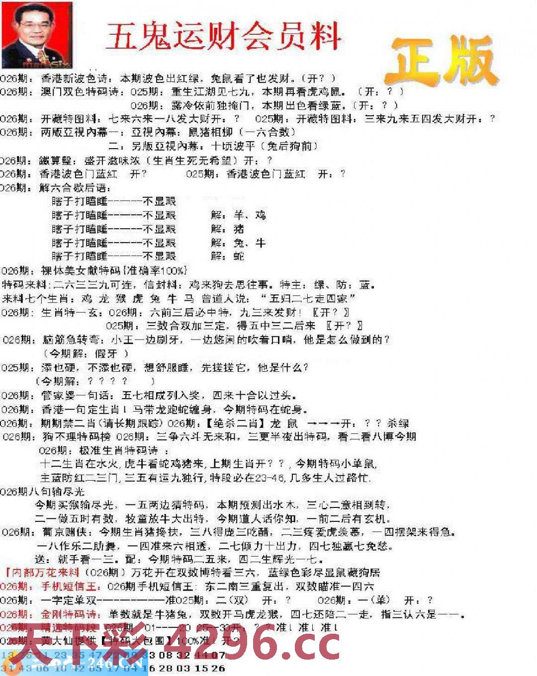 026期:正版五鬼运财会员料
