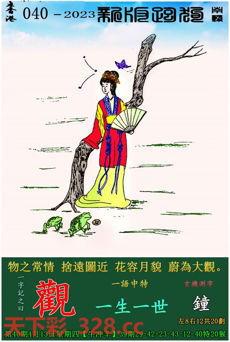 040期新版跑狗一字記之曰:【觀】 玄機測字:《鐘》 一語中特:一生一世