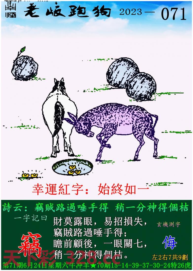 071期老版跑狗一字記之曰:【竊】 詩雲:竊賊路過唾手得,稍一分神得個桔。