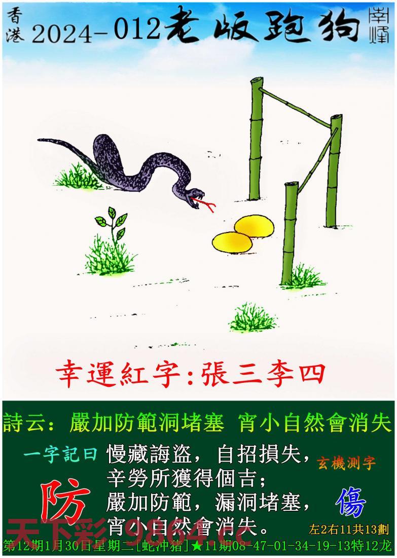 012期老版跑狗一字記之曰:【防】 詩雲:嚴加防範洞堵塞,宵小自然會消失